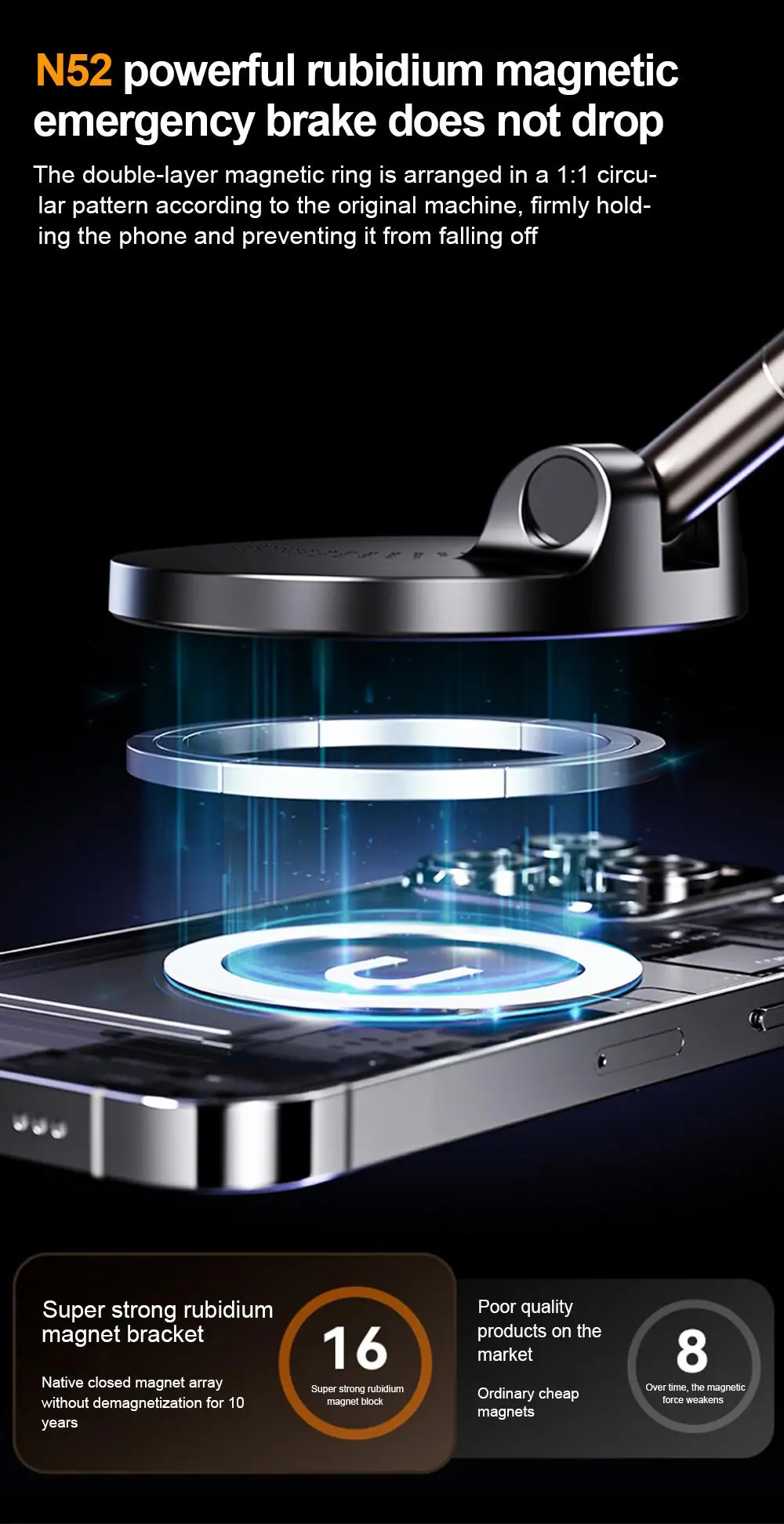 Strong Magnetic Grip: The magnetic car phone holder's strong grip keeps your device secure, even on bumpy roads.